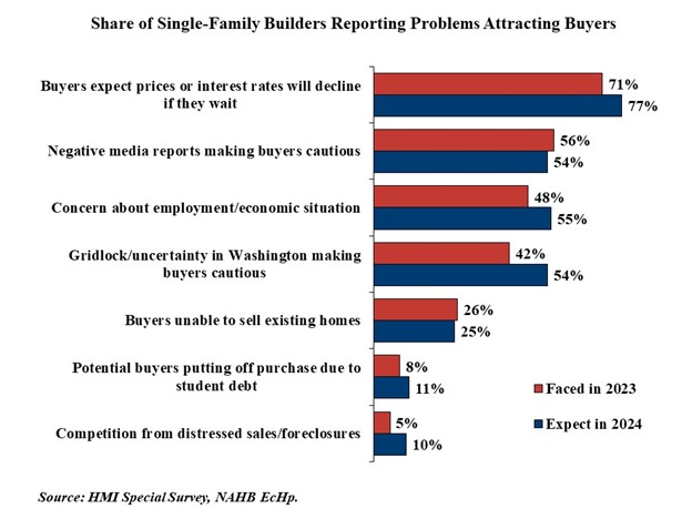 This is coupled with the hesitancy of homebuyers to enter the marketplace instead of renting. The report indicated that 77% of builders expect buyer hesitancy, hoping for price cuts or lower interest rates. It underscores the need to build customer confidence through transparent communication and education about the market. It is important to encourage active homebuilding and that now is the right time to build—waiting on the sidelines might mean missing out on the opportunity and loss in brand marketability.