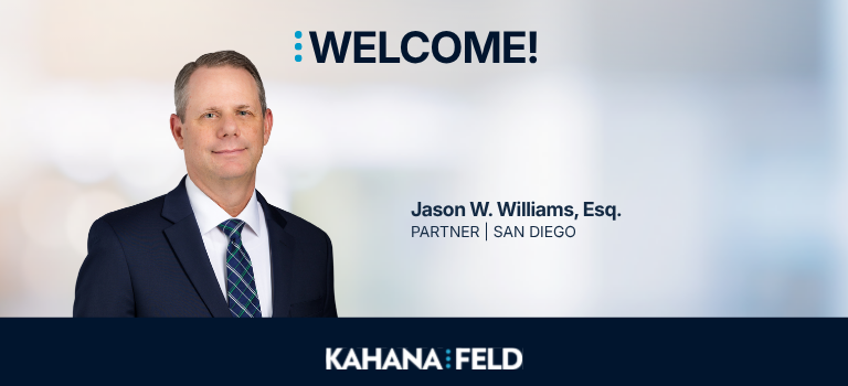 IRVINE, CA – March 2, 2026 – Kahana Feld is pleased to announce that Jason W. Williams has joined the firm as partner in the General Liability group.