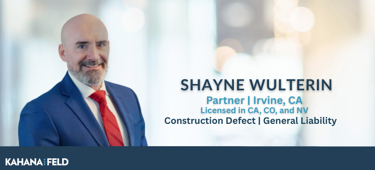 IRVINE, CA – June 24, 2025 – Kahana Feld is pleased to announce that Shayne Wulterin, an experienced trial attorney, is joining the firm as a Partner in the General Liability and Construction Defect practice groups....