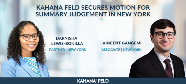 Kahana Feld partner Darnisha Lewis-Bonilla and attorney Vincent C. Gangemi, building on the substantial work of our late partner Robert Fishkin, recently secured a motion for summary...