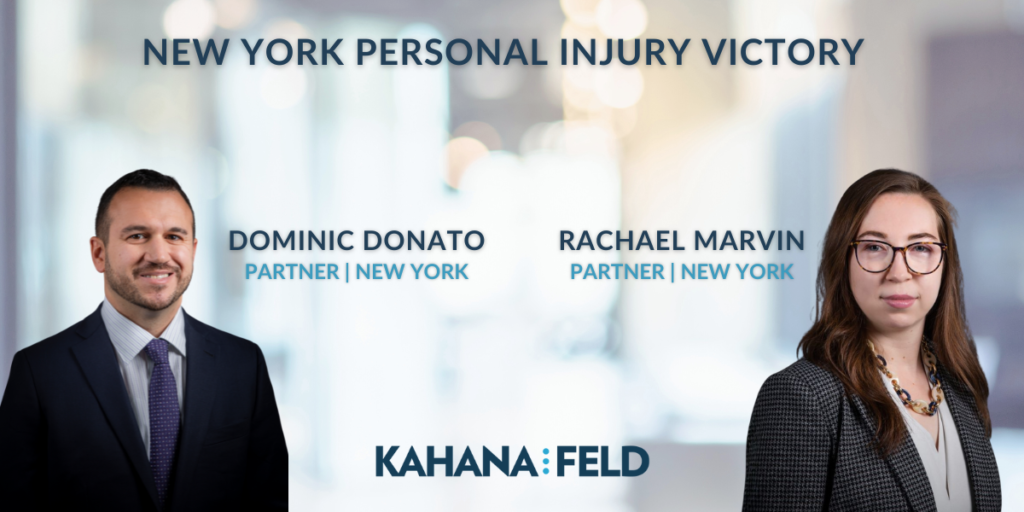 Kahana Feld partners Rachael Marvin and Dominic Donato recently achieved a significant victory in Kings County obtaining a voluntary discontinuance with prejudice of a high-exposure trip-and-fall…